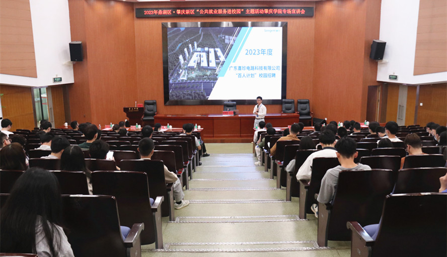 活动期间,在学校学术报告厅举办了2023年鼎湖区·肇庆新区“公共就业服务进校园”主题活动肇庆学院专场宣讲会。会上鼎湖区人社局、肇庆新区企业发展服务中心分别向学生们讲解高校毕业生就业创业政策和介绍了鼎湖区、肇庆新区的城市建设和产业发展状况。企业代表为学生们展示了企业的高精尖产品、先进技术、舒适的工作环境、优厚的福利待遇和广阔的发展空间,增进毕业生对企业的了解。