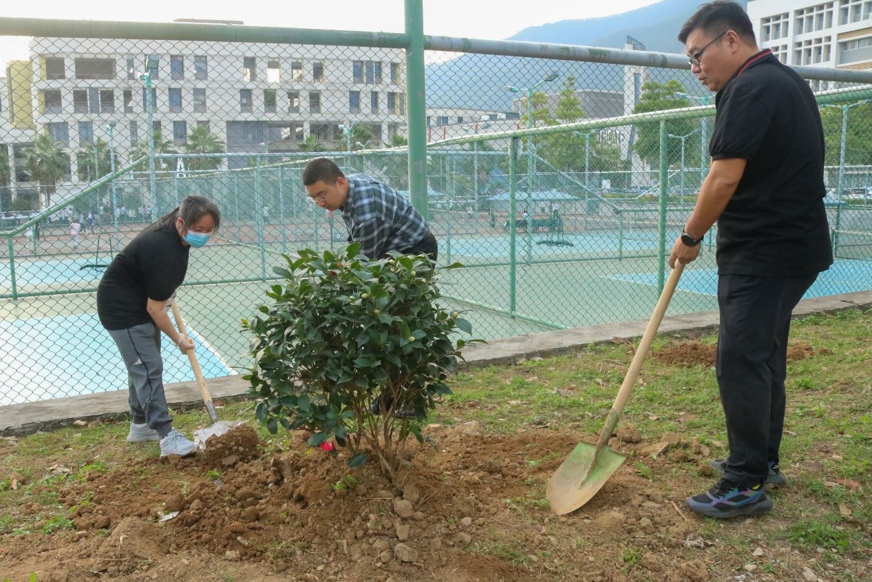 简短的启动仪式后,植树活动分别在艺术大楼东侧广场、教工之家北侧和大学科技园南侧进行。现场气氛活跃,师生十分投入,一同齐心协力,挥锹、铲土、培土、围堰、提水、浇灌,为建设和谐美丽绿色校园挥洒汗水,贡献力量,活动共计栽种苗木300多株。