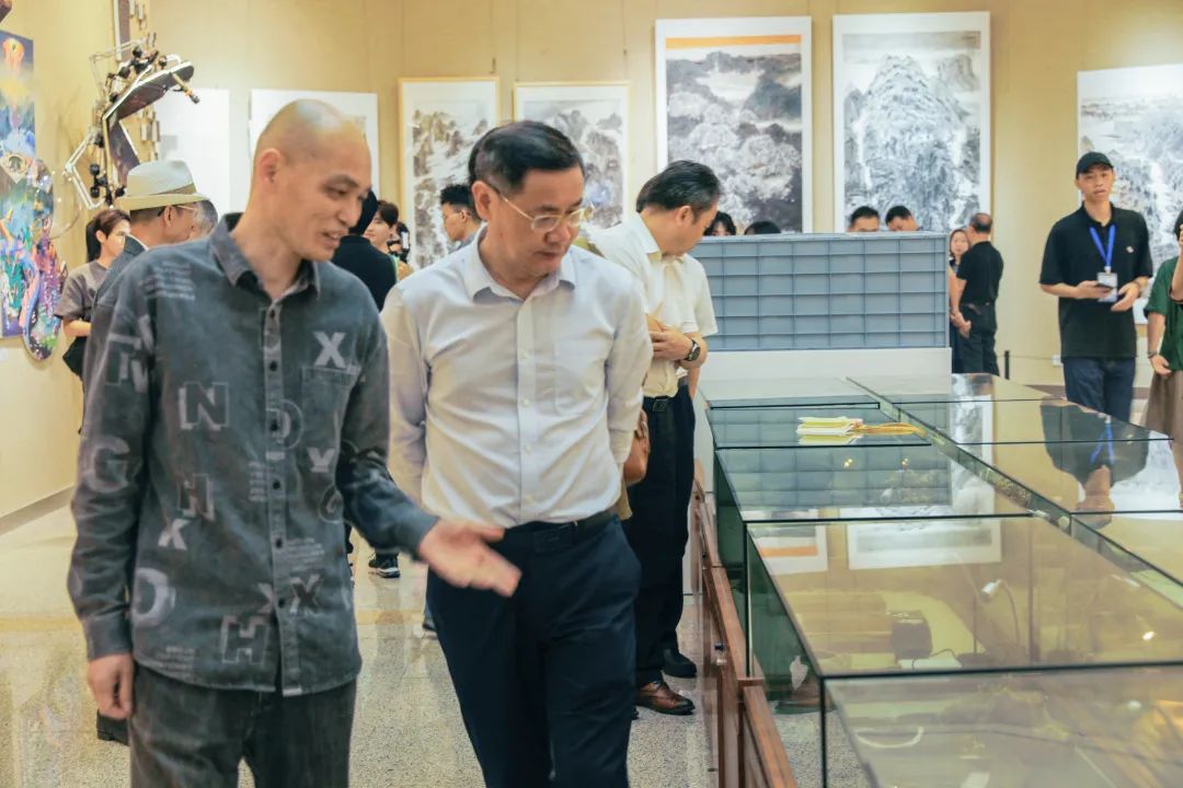 校长吴业春,副校长肖起清、胡文涛,学校有关职能部门和二级学院负责人,部分兄弟院校代表,市美术家协会、市书法家协会、市端砚协会、市收藏家协会、市古玩鉴藏协会代表,多家用人单位负责人和美术学院师生代表出席开幕式。
