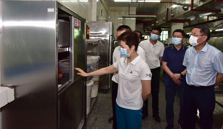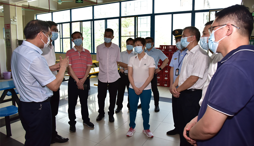 本网讯 6月12日,肇庆市副市长何婧到校检查督导食堂食品安全“两个责任”落实情况。校长吴业春、副校长唐冬冬、端州区副区长植嘉升,肇庆市、端州区市场监督管理局及后勤管理处负责人陪同。