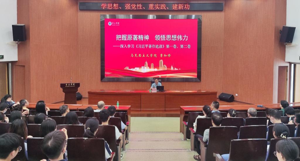 本网讯 6月14日,数学院以“把握原著精神,领悟思想伟力”为主题,开展深入学习《习近平著作选读》第一卷、第二卷宣讲活动,校宣讲团成员、马院副院长曹和修教授主讲,数学院全体师生党员、入党积极分子300多人参加宣讲会。