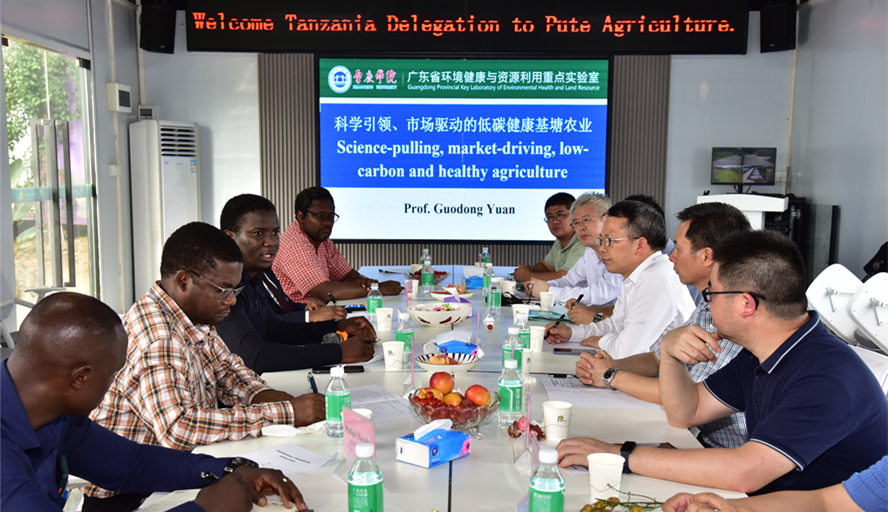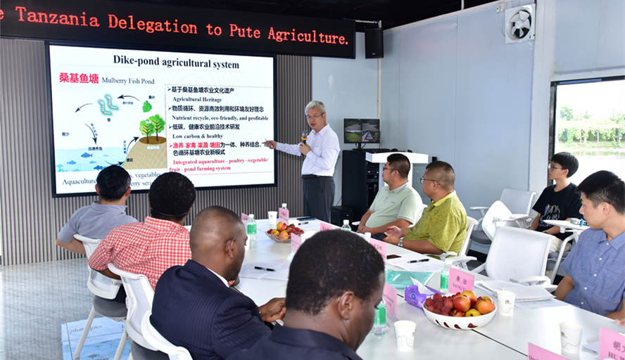 会上,袁国栋就种养结合的基塘农业模式、高密度生态渔养池、三产融合的低碳健康乡村建设实践作了介绍,随后坦桑尼亚客人对上述三方面的示范点作了实地参观。