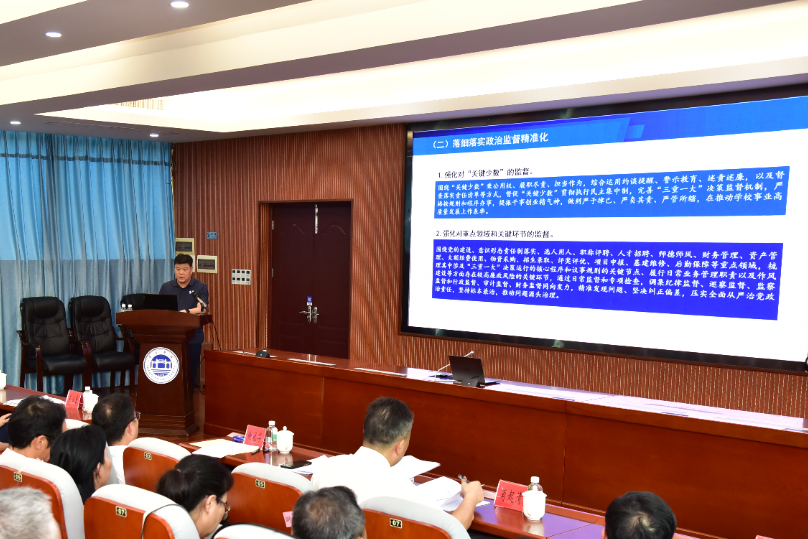 李永佳以“全面从严治党,营造清朗校园”为主题作报告,他指出要聚焦党的二十大关于加快建设教育强国战略部署,推进政治监督具体化、精准化、常态化;要坚持以严的基调强化正风肃纪反腐,努力营造风清气正的政治生态和良好的育人环境;要坚持推动完善监督体系,增强学校治理效能,为营造清朗校园提供有力支撑。