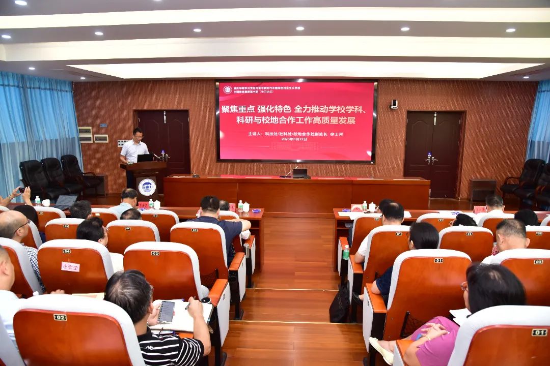 徐士河以“聚焦重点 强化特色 全力推动学校学科、科研与校地合作工作高质量发展”为主题作报告。提出要深化科技体制改革,健全科技评价体系和激励机制,为创新提供良好环境;加强学科交叉融合和特色凝练,提升学科整体创新能力和服务能力,助力硕士学位点建设和服务地方经济社会发展水平提升;推进信息化建设,提升管理和服务水平,助力学校教育评价改革;聚焦“百千万工程”, 扎实推进“双百行动”,赋能乡村振兴。