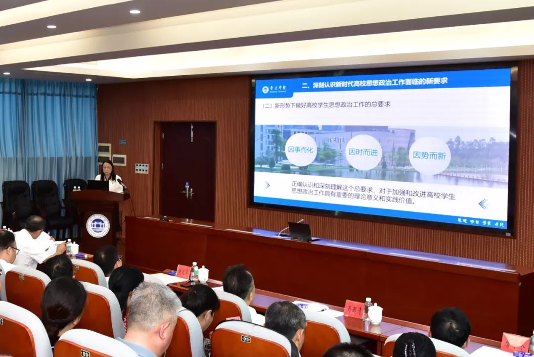 陈玉华以“牢记使命,守正创新,推动学生思想政治工作高质量发展”为主题作报告,提出要深刻领会习近平总书记关于高校思想政治工作和青年工作的重要论述;要深刻认识新时代高校思想政治工作面临的新要求;要推动学生思想政治工作高质量发展。