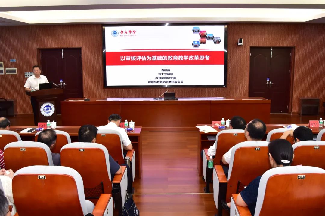 肖起清围绕“以审核评估为基础的教育教学改革思考”为主题作报告。从高等教育的发展、大学发展中存在的突出问题、本科教育教学评估政策演变讲述高等教育发展与评估;从审核评估的指导思想、指导方针、基本理念、问题导向等方面谈审核评估的理念内涵;从教育教学改革的动力机制、基本路径、重点与难点、抓手与内容等方面阐述关于学校教学改革的思考,并作出四点总结:一是将审核评估作为教育教学改革的倒逼机制;二是教育教学改革始终以学生发展为中心;三是教育教学改革始终以教师为主导;四是学校教育教学改革工作永远在路上。