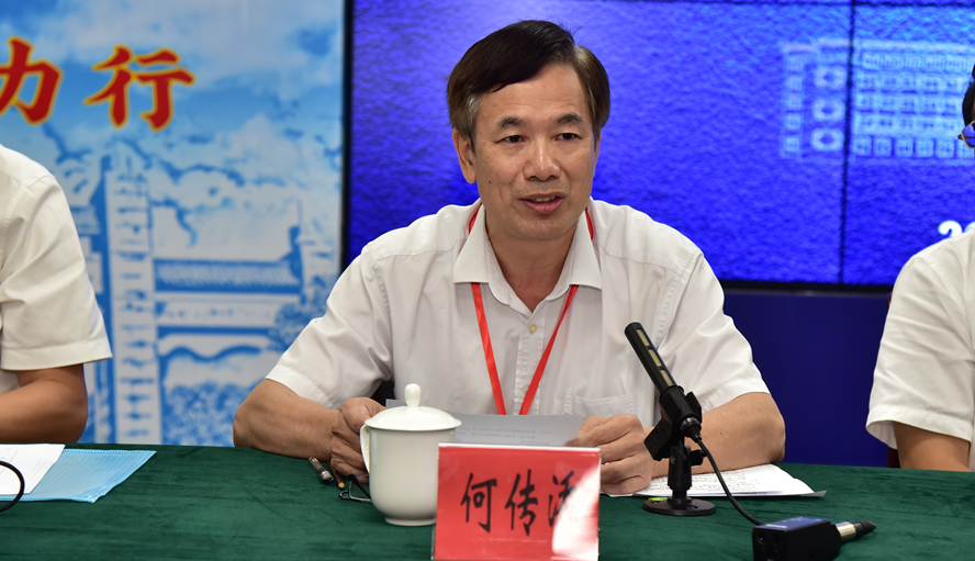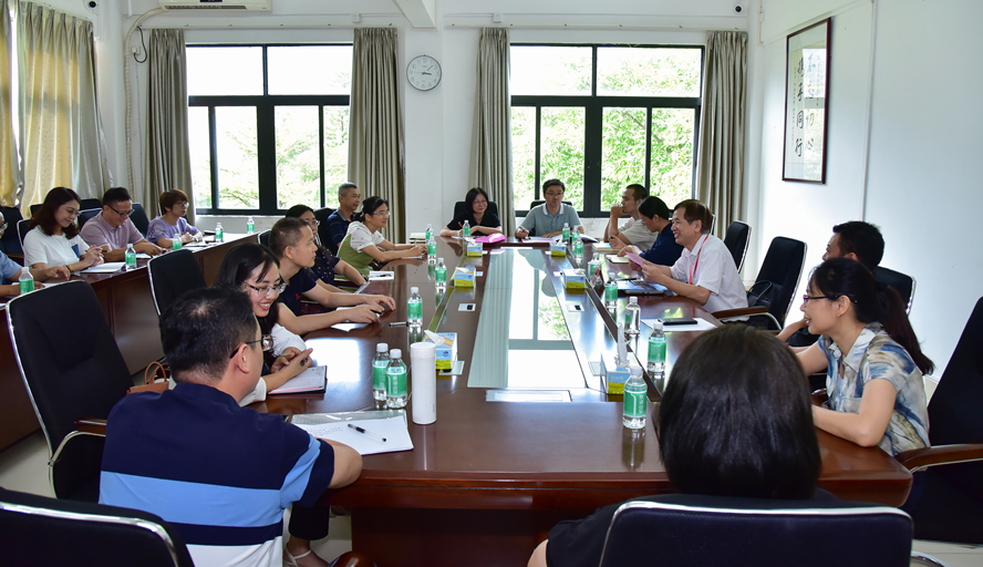 专家组组长朱林生主持会议,专家组成员廖益、查道林、何传添、李建华、周长山,广东省教育厅副厅长冯伟、高教处处长姜琳、高教处副处长吴华明,校党委书记谢冠华、校长吴业春等全体校领导出席会议。