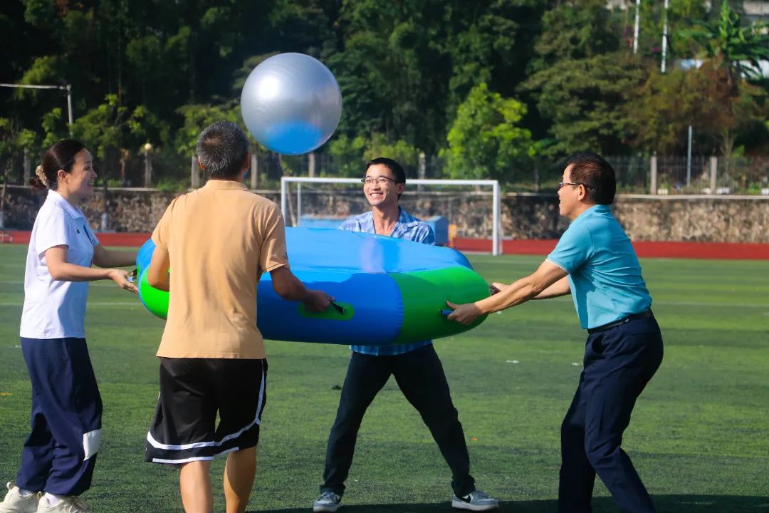 心心相印和毛毛虫是我每年都会参加的项目。我认为在这两个项目中相互配合非常重要。因此,在比赛之前我们会先分工好每个队员前后的站位跟速度,并且商量好第一个人怎么去“带”以及最后一个人怎么去“推”的比赛策略。本次校运会从开幕式到舞蹈表演都十分精彩,尤其在趣味运动会比赛期间让我们教职工们收获了许多快乐。