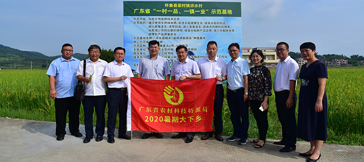 吴业春一行首先深入我校产学研合作基地梁村镇富硒米基地、谭脉西瓜基地考察。富硒米基地和谭脉西瓜基地为我校科技特派员进行富硒水稻种植和富硒瓜果蔬菜培植的基地,通过富硒技术手段,使稻米蔬果等富含人体必需的硒元素,为提升大众饮食健康、帮助当地贫困户提高水稻种植技术和土地高质高产做出积极实践。目前,我校富硒水稻技术已在怀集、广宁、四会等县区进行大面积推广,并取得良好产出效益。随后,调研组一行到怀集县省级丝苗米产业园、广东地豪食品公司、华辰玫瑰园等产业园区考察,了解这些企业立足本地农产品特色资源、结合本地农业优势打造优势产业、打造优质产品、联农带农推动农业产业发展的有效做法。
