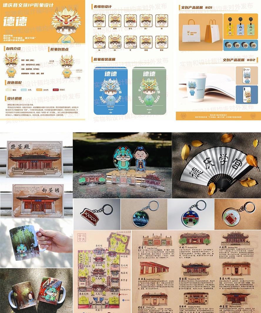 据了解,实践团连续多年深耕德庆,熟悉了解当地风土人情。在2022年他们深入挖掘德庆学宫传统文化,创作《德庆学宫视觉VI设计及应用》作品,获得当年的“全国大学生暑期实践成果TOP100”,为德庆学宫宣传推广注入“新活力”,并在今年联合发布投入市场。