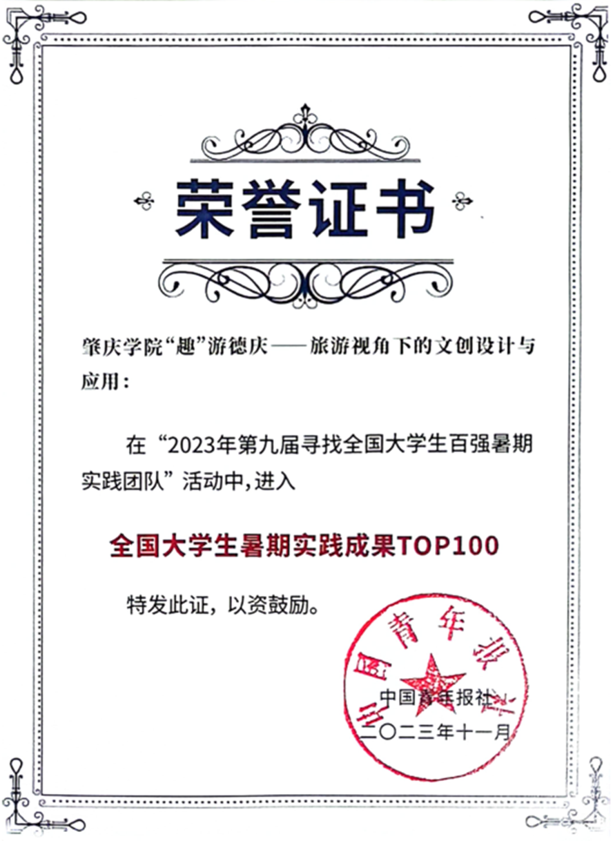 本网讯 近日,中国青年报社公布了2023年第九届全国大学生暑期实践展示活动获奖名单,我校“千年端溪,融文兴旅”乡村振兴促进实践团开发的“‘趣’游德庆——旅游视角下的文创设计与应用”一项成果入围全国大学生暑期实践成果TOP100。
