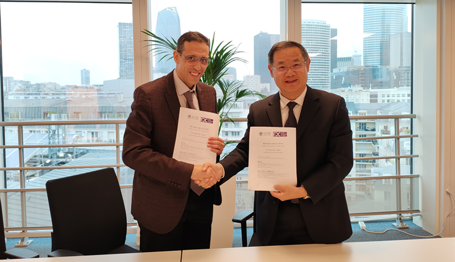 出访法国期间,代表团与巴黎EDC商学院教学校长Ahmed Dammak、国际处、学生交流处等部门负责人就师生交流、本硕连读、教师互访等议题进行了会谈交流,并签署了合作备忘录,进一步巩固和深化两校合作关系。与巴黎高等文化艺术管理学院校长Marie-Sandrine Cadudal及招生部、国际部等部门负责人就学校特色、专业设置及可能的合作领域进行交流座谈,双方一致认为未来可进一步加强合作与交流。