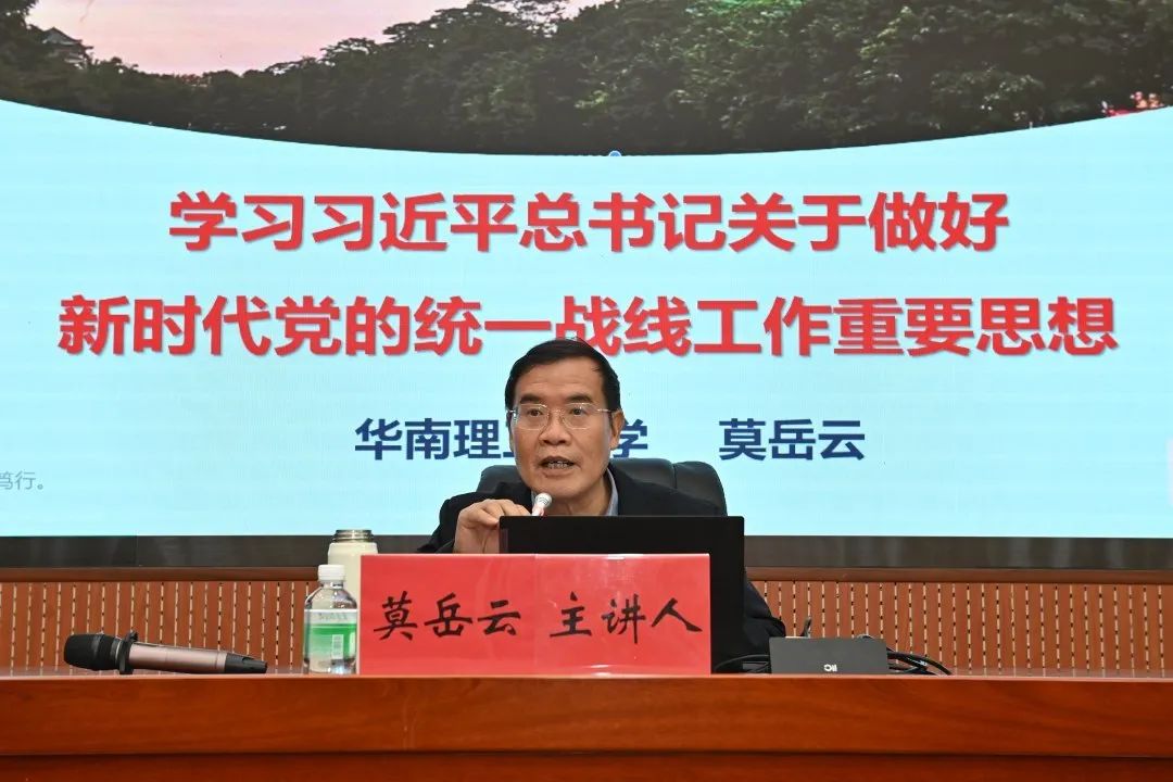 受研究会邀请,华南理工大学马克思主义学院二级教授莫岳云就《学习习近平总书记关于做好新时代党的统一战线工作重要思想》作专题辅导报告。报告围绕“马克思主义经典作家关于统一战线基本原理、习近平总书记统战工作重要思想的科学内涵、如何做好新时代党的统一战线工作”三个方面做了辅导,阐述了统一战线的法宝作用和“十二个必须”的丰富内涵。