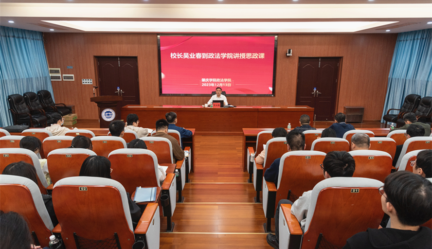 本网讯 为深入贯彻落实《肇庆学院领导干部深入基层联系学生工作实施方案》精神,把学习党的二十大精神和强化学生工作紧密结合起来,12月13日,吴业春校长在第二会议室为政法学院全体教职工及21思政3班全体学生讲授思政课,在会后参加并指导该班班会课,到学生宿舍开展联系走访活动。政法学院党委书记侯玉基主持会议并陪同联系走访。
