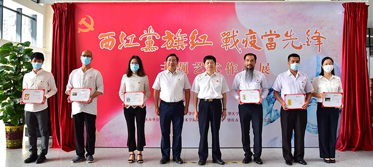 本网讯 6月29日,校党委书记曾桓松、校党委副书记谢冠华出席由市委组织部、我校和市图书馆联合举办的“西江党旗红 战疫当先锋”主题艺术作品展揭幕式。曾桓松与市委常委、市委组织部部长林飞鸣共同为作品展揭幕。各市直机关代表参加。