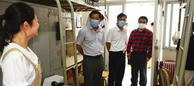 下午,校长吴业春、校党委副书记谢冠华来到学生宿舍,看望慰问返校学子。他们询问学生返校的感受,叮嘱大家注意卫生保洁,加强防控,按照学校、学院的要求办理毕业手续。他们尤其关心同学们的就业情况,鼓励大家坚定信心,转变观念,积极选择人生职场,尽快找到工作岗位,在毕业离校后迅速踏上新的奋斗里程。