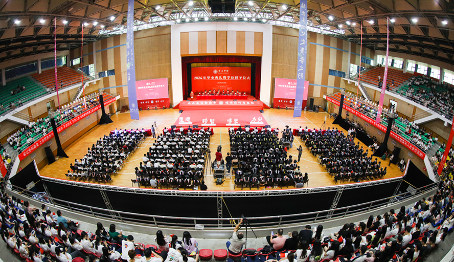 学校今年共有61个专业,4411名同学顺利毕业、获得学位。仪式上,校领导为2024届毕业生代表颁发毕业证书。谢冠华为优秀毕业生代表颁发荣誉证书、为毕业生校友工作联络员颁发聘书;吴业春为各班毕业生代表、援藏援疆支教毕业生拨正学士帽流苏并颁发学士学位证书,授予学士学位;谢冠华、吴业春共同为毕业生队伍授旗“基层就业服务团”“大国先生接班人”“乡村振兴先锋队”“学术科研生力军”,进一步引导更多的优秀毕业生扎根基层、报效祖国、服务人民,让青春在为中国式现代化挺膺担当中焕发绚丽光彩。