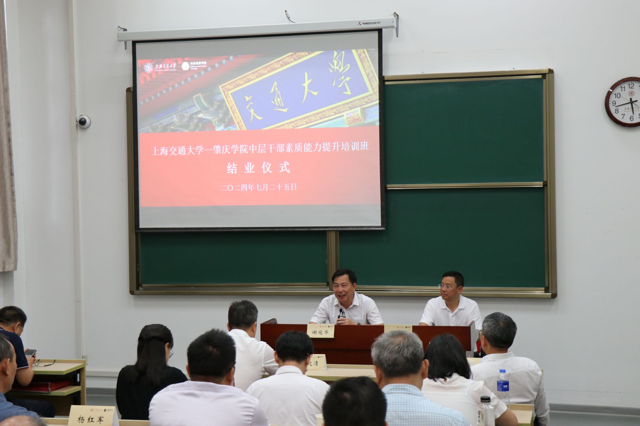 本网讯 7月20日至26日,我校中层领导干部素质能力提升班(第二期)在上海交通大学举办。校党委书记谢冠华,党委委员、副校长肖起清、胡文涛,党委委员、纪委书记王克俭,广东工业大学帮扶队长刘怡军,部分中层正职领导干部以及我校党建“组团式”帮扶的广东信息工程职业学院和广州应用科技学院的领导干部参加培训班。