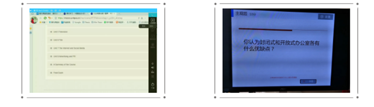 文学院、外国语学院等文科类学院教师多数采用钉钉、雨课堂、中国慕课等一系列学习平台,并发送课件到群里供学生参考,通过签到、讲解、互动、讨论、答疑、弹幕功能等环节,增强课堂体验的效果。也有部分教师通过提前录制课程的形式进行线上授课。部分外国语学院教师还采用iwrite等平台进行网络直播授课,指导学生课后练习。对于英语语音课的教学,老师线上指导学生练习发音,学生以传送录音的形式上交作业。