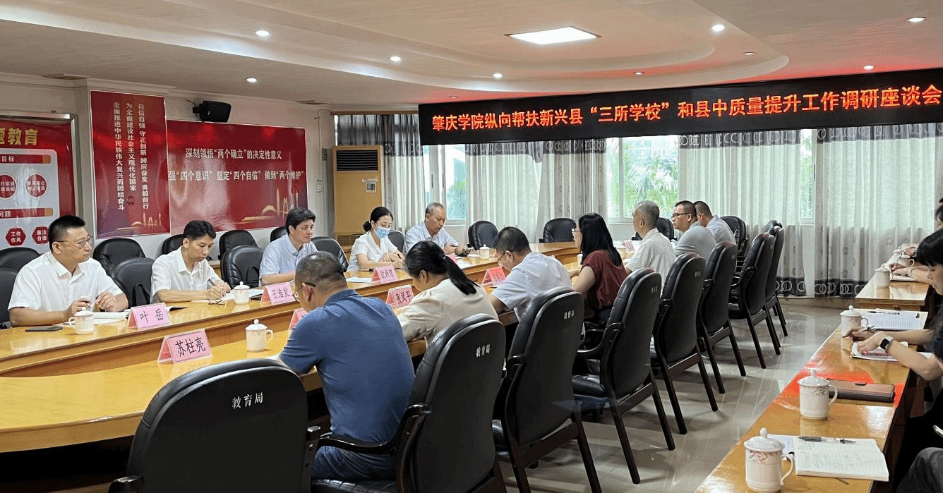 随后,与会人员围绕“三所学校”和县中质量提升工作帮扶内容、工作方式以及我校学生实习、就业等进行了深入交流。欧洪湛一行还先后到新兴县华侨中学、洞口中学和洞口小学开展实地考察调研。