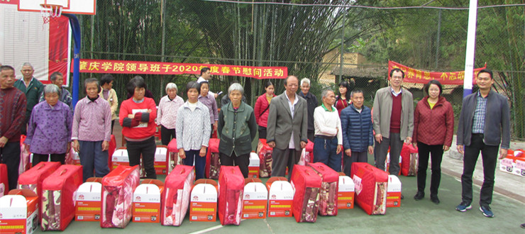 本网讯 迎新春,送温暖。1月16日,校党委副书记兼纪委书记黄劲松、副校长林俊睦率领有关职能部门负责人,深入我校结对帮扶点、广宁县横山镇横山社区和罗帷村开展节前扶贫济困送温暖活动,代表学校向贫困群众致以新春的慰问和节日的祝福。校党委委员、组织部部长欧洪湛,校党委委员、教育基金会理事长沈钦萍参加活动。