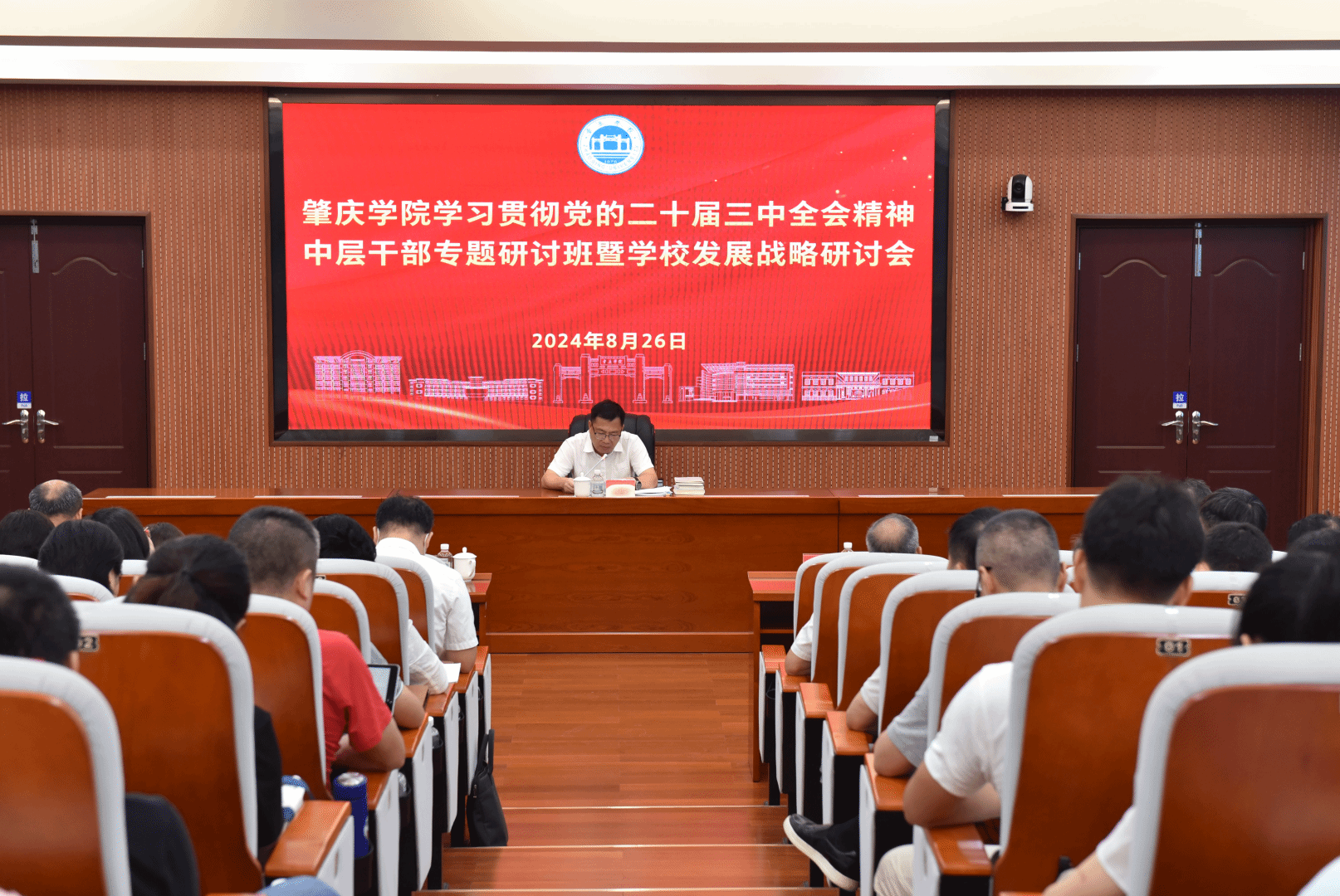 本网讯 8月26日至28日,学校举办学习贯彻党的二十届三中全会精神中层干部专题研讨班暨学校发展战略研讨会,深入学习贯彻党的二十届三中全会精神,传达学习贯彻习近平总书记在党的二十届三中全会上的重要讲话精神和全会决策部署,抓好全会精神的学习宣传贯彻工作,分析研判学校发展形势,研讨推动学校高质量发展的战略举措。