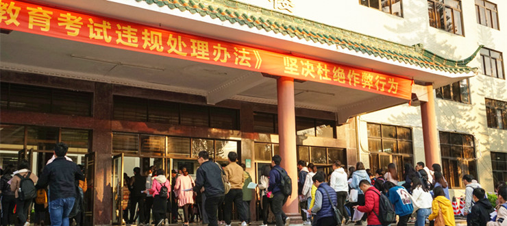 据悉,本次在我校考点的参考人数较去年增长1000余人。面对考生人数增幅较大的情况,我校重视加强考试管理,严格控制考场秩序,考场数量在去年的82个教室的基础上增设了46个教室。