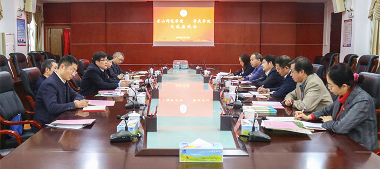 王辉介绍了乐山师范学院的发展历程与基本情况,提出创新人才培养理念的思路。随后,与会双方就申硕、学校体制建设规划、学校与企业和政府的合作等方面进行深入交流,互相借鉴,互相学习,更好地汲取办学经验。