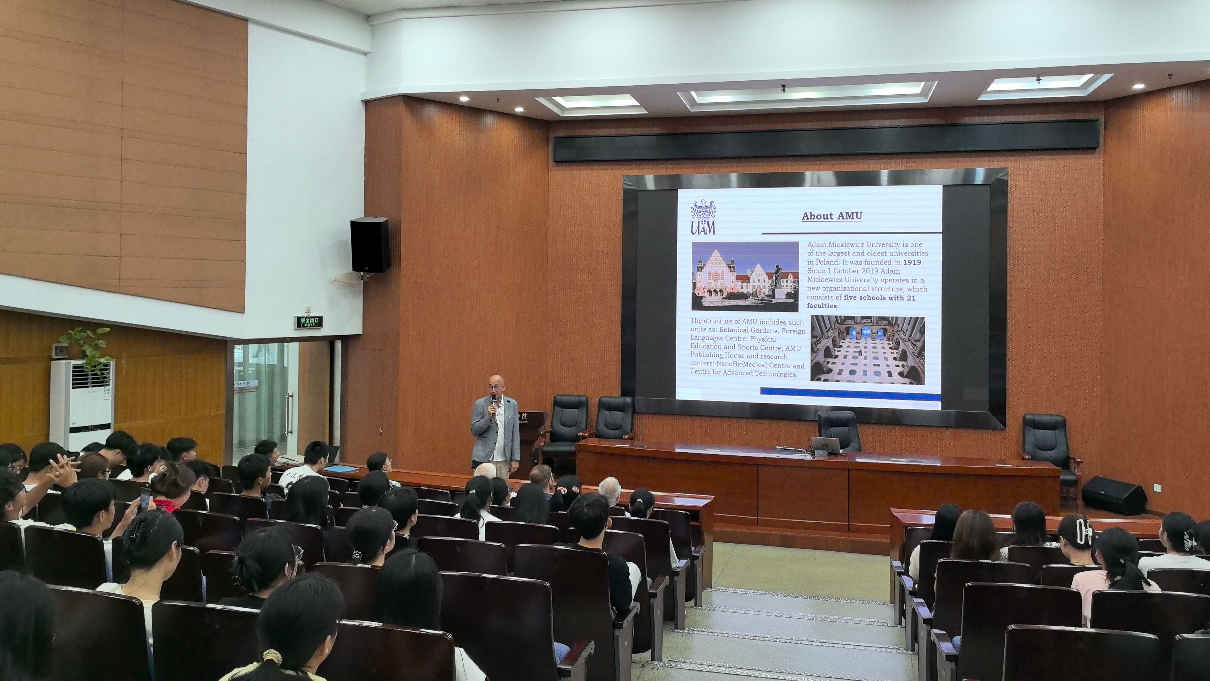 此次来访,波兰密兹凯维奇大学的专家学者面向全校师生作多场讲座。27日下午,波兰密兹凯维奇大学政治与新闻学院战略研究系拉法尔·威斯涅夫斯基博士面向政法学院师生作题为《当代波兰:政治、欧洲关系与外交政策》的英文学术报告。29日下午,波兰密兹凯维奇大学跨学科研究中心主任、中国事务负责人拉法尔·蒂姆切克R教授在学术报告厅面向全校学子作赴波兰密兹凯维奇大学交流学习的宣讲推介,来自各学院300余名学生参加,反响热烈。