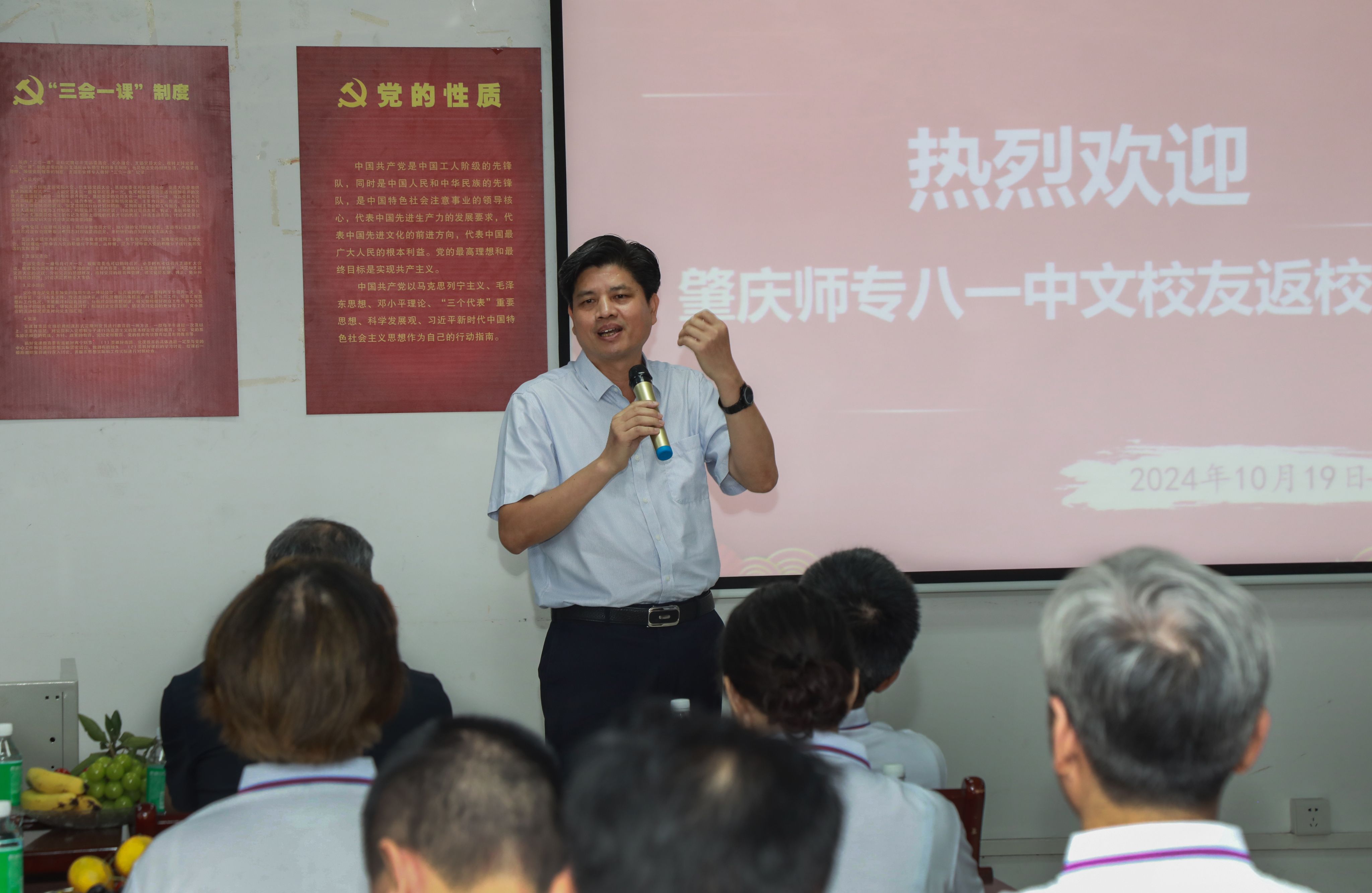 本网讯 四十载再聚首,一辈子中文情。10月19日,原肇庆师专1981级中文系校友近40人回访母校,在文学与传媒学院进行座谈,同忆青春时光,感恩母校培养,祝福母校事业明天更加辉煌。校党委副书记欧洪湛出席,教育发展基金会、校友会,文学与传媒学院有关领导参加活动。