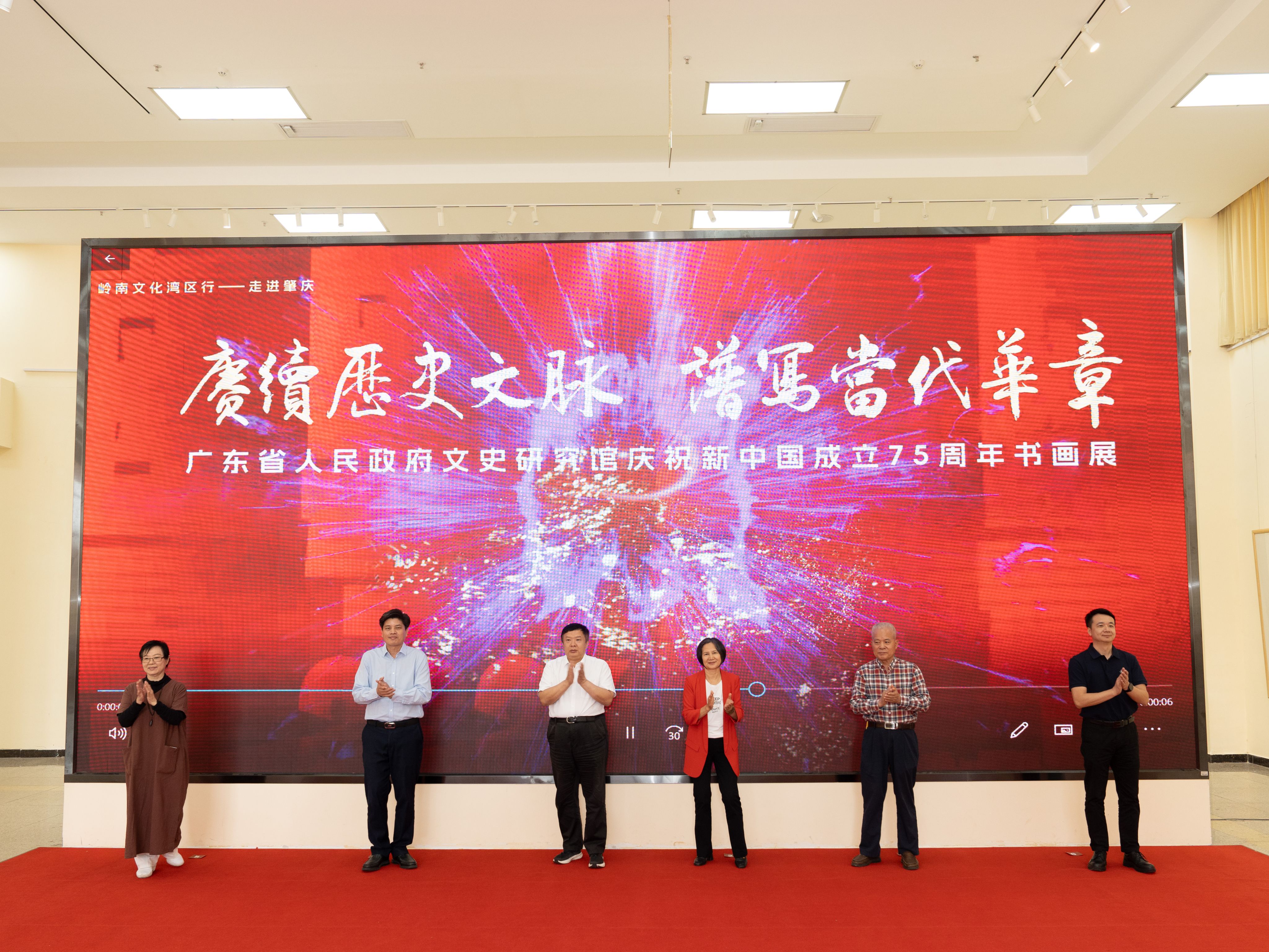 23日上午,“赓续历史文脉谱写当代华章——广东省人民政府文史研究馆庆祝新中国成立75周年书画展”在肇庆美术馆开幕。开幕式上,广东省文史研究馆馆员、书画研究院副院长、广州美术学院教授梁如洁,肇庆学院党委副书记欧洪湛,肇庆市人大常委会副主任周燕,广东省人民政府参事室(文史研究馆)党组成员、一级巡视员杨敏先后致辞。