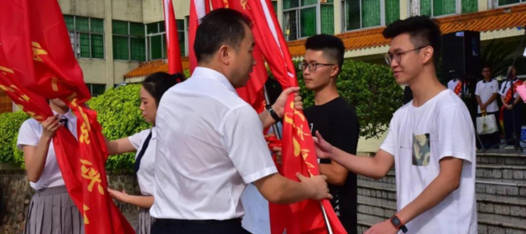 随后,肖起清为各片区实习队伍授旗,队员挥舞旗帜,向学校表达砚园学子做好教育实习的信心与决心,展现昂扬的青春风采。