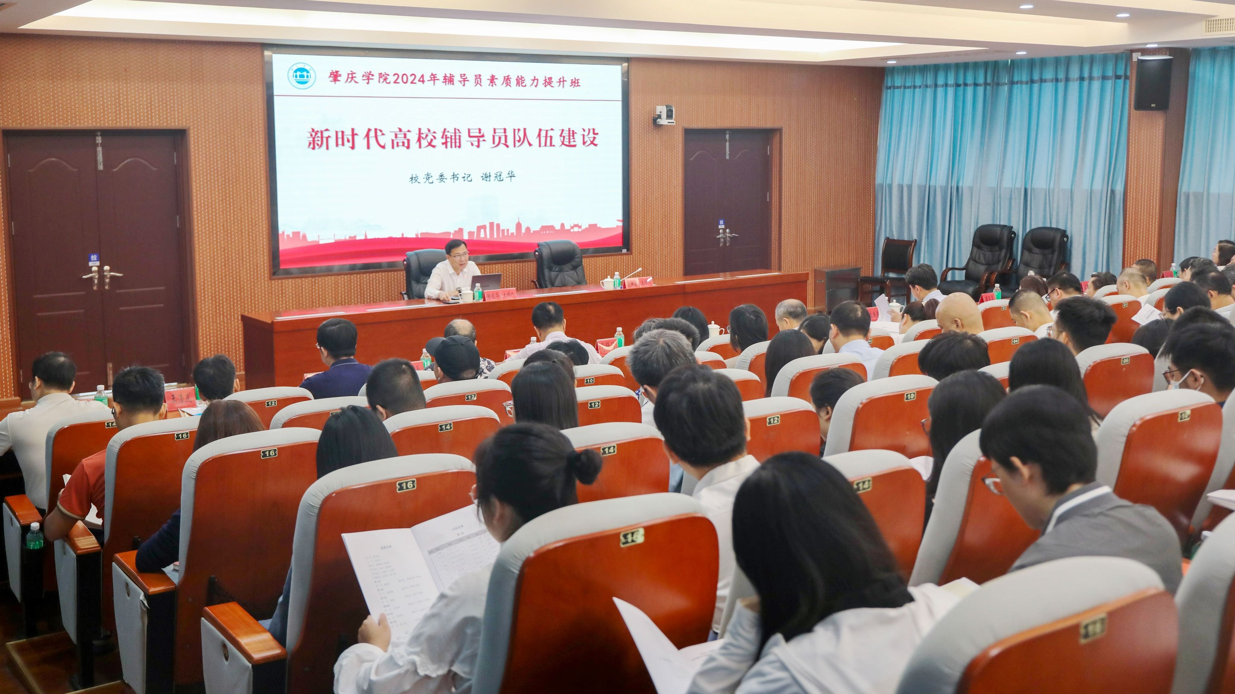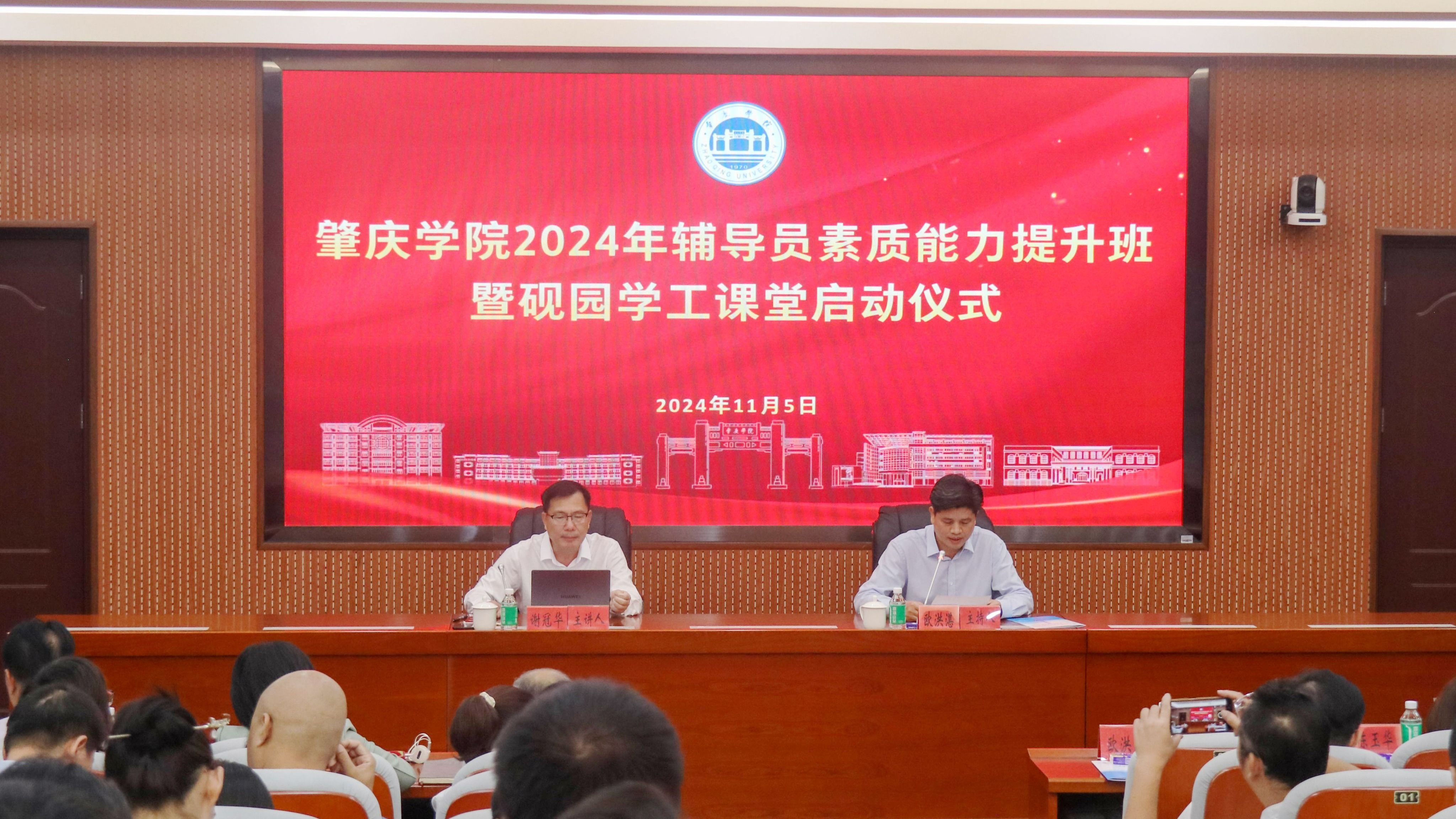 本网讯 为进一步提升辅导员队伍素质能力,推动学校辅导员队伍专业化、职业化建设,11月5日,我校举行2024年辅导员素质能力提升班暨“砚园学工课堂”启动仪式。校党委书记谢冠华、校党委副书记欧洪湛出席,学校相关职能部门负责人,二级学院党委书记、副书记和全体辅导员参加了仪式。仪式由欧洪湛主持。