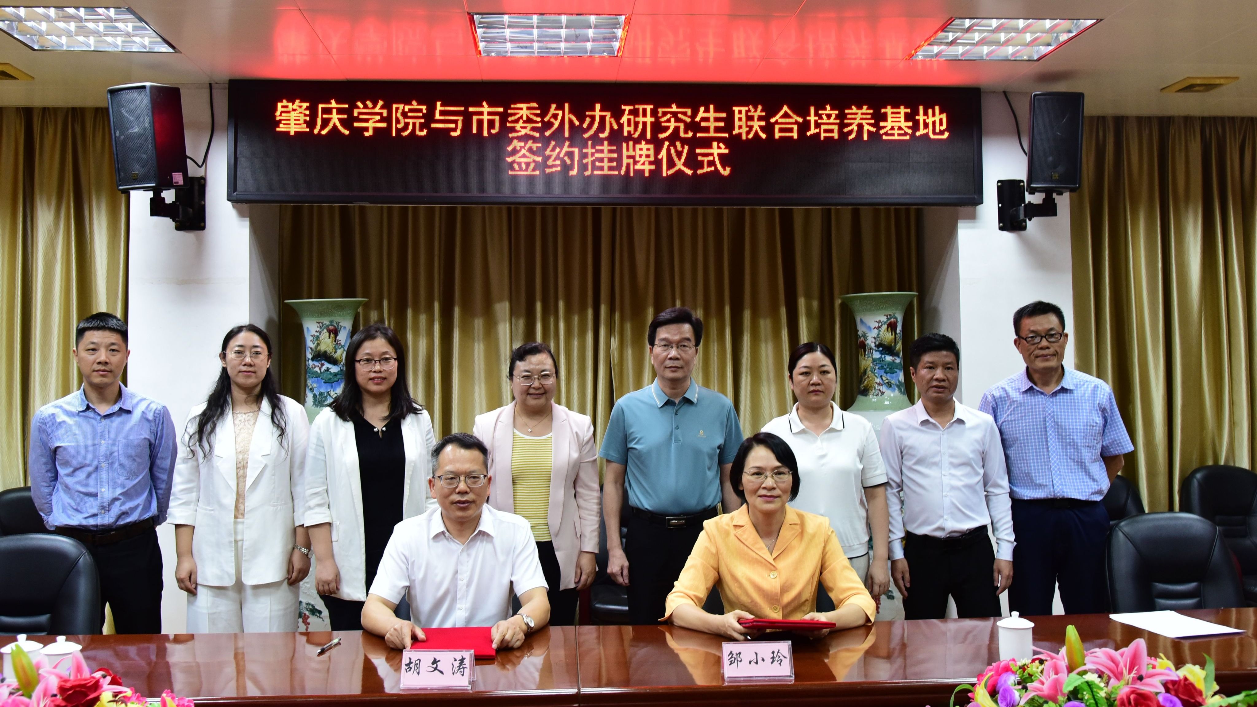 会上,胡文涛与邹小玲代表双方进行签约,肇庆学院与肇庆市委外办研究生联合培养基地挂牌活动顺利完成。