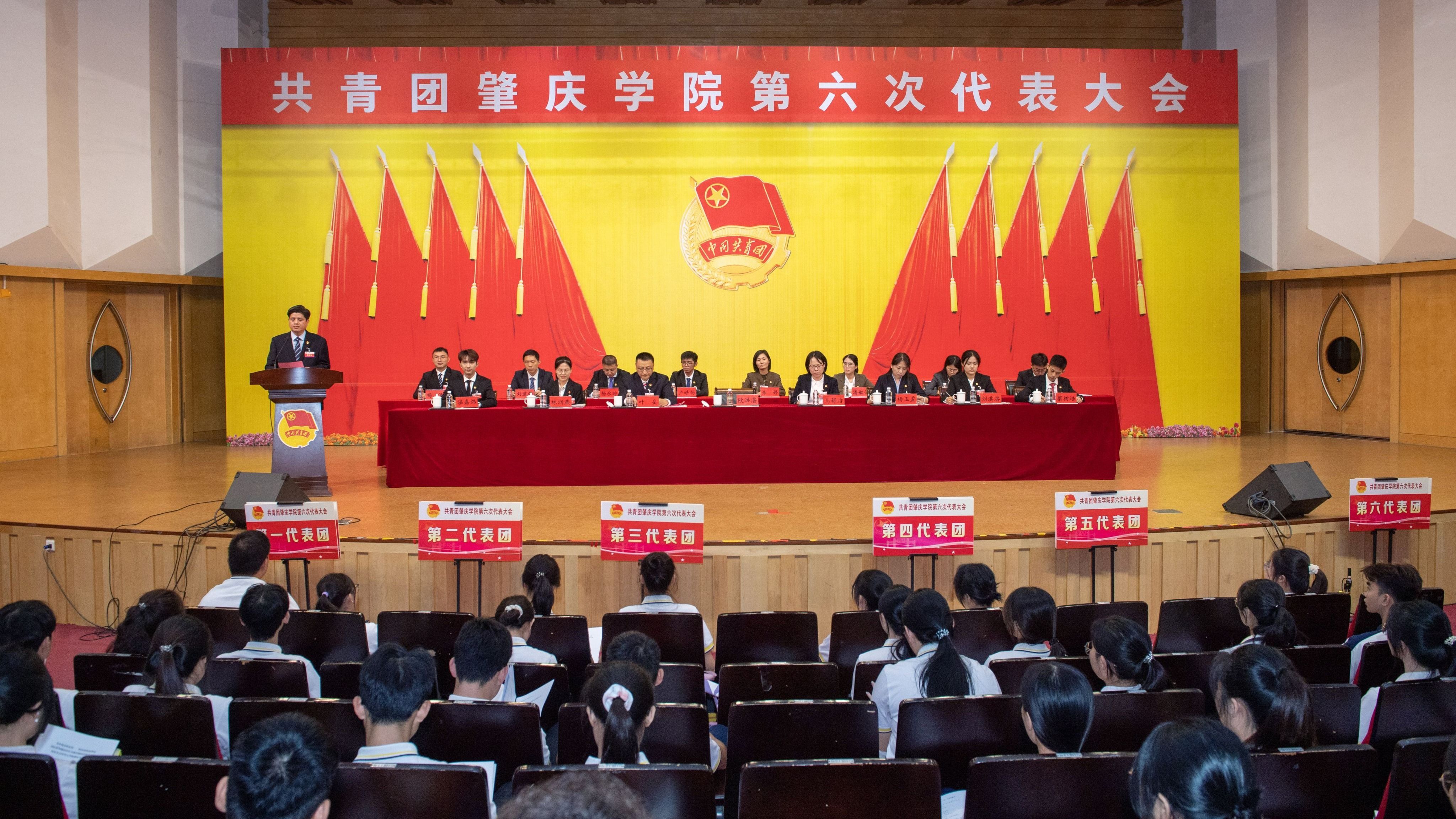 本网讯 11月9日,共青团肇庆学院委员会第六次代表大会胜利召开。校党委副书记欧洪湛、团广东省委学校部副部长陈宇鹏出席开幕式并讲话,团肇庆市委书记张莉、校党委委员、宣传统战部部长陈前、校学生工作部部长、招生与就业指导中心主任陈玉华、各二级学院党委负责人、兄弟院校代表出席开幕式。学校工会常务副主席梁建梅代表学校工会致辞,三十多所高校团委发来贺信贺电祝贺大会胜利召开。