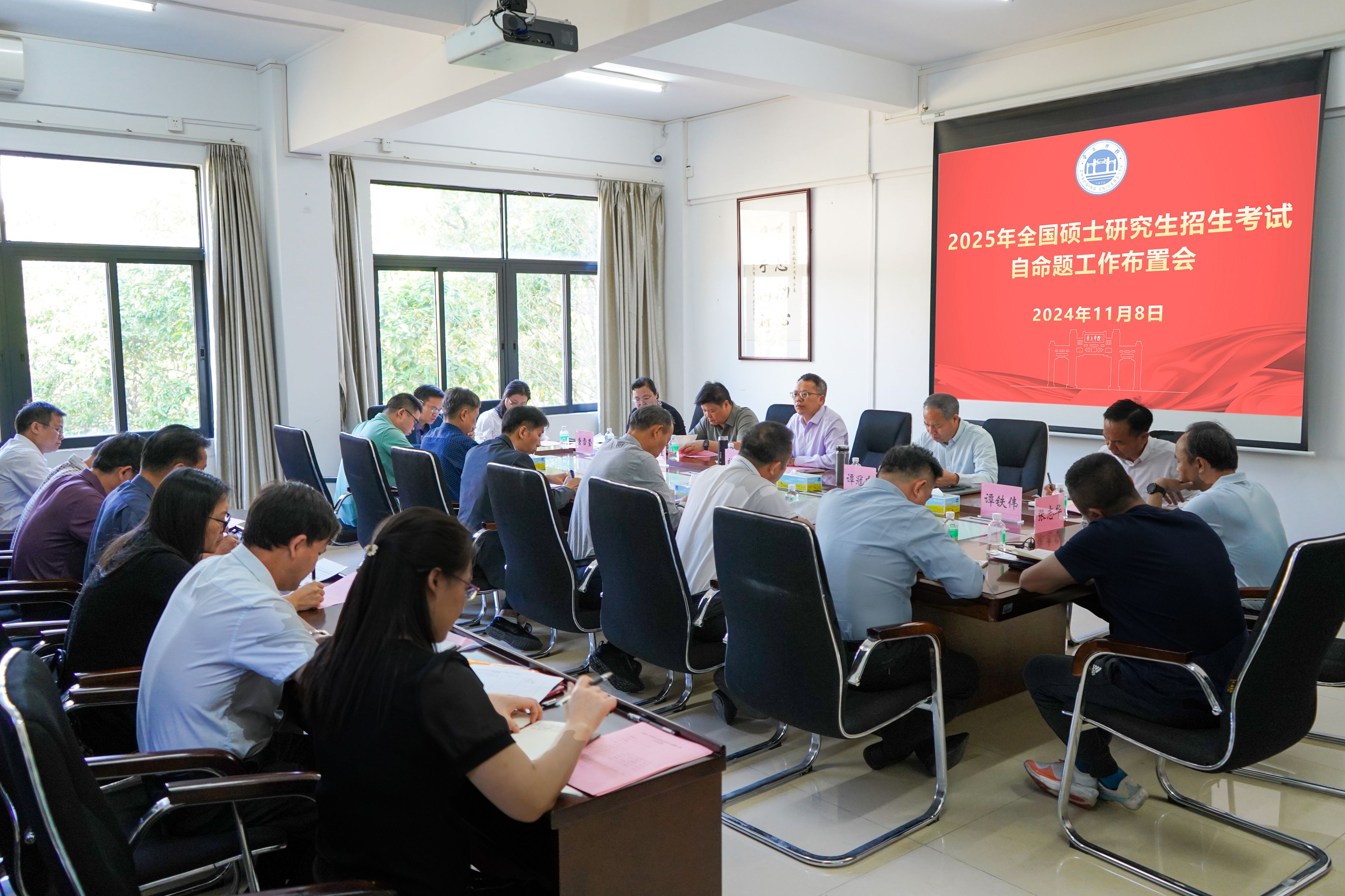 本网讯 为加强我校硕士研究生招生考试自命题工作的规范化、制度化管理,确保考试安全、平稳、有序,学校于11月8日组织召开了2025年全国硕士研究生招生考试自命题工作布置会。副校长胡文涛出席并讲话,研究生院院长唐雪莹主持。学校相关部门负责人和硕士学位点所在学院书记、院长参加会议。