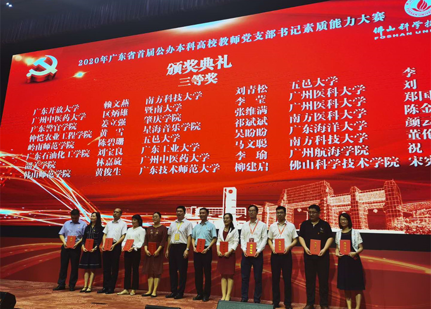 本网讯 由省委教育工委主办的广东省首届公办本科高校教师党支部书记素质能力大赛决赛近日在佛山举行,我校马克思主义学院“纲要”教研室教师党支部书记张维满副教授喜获三等奖。