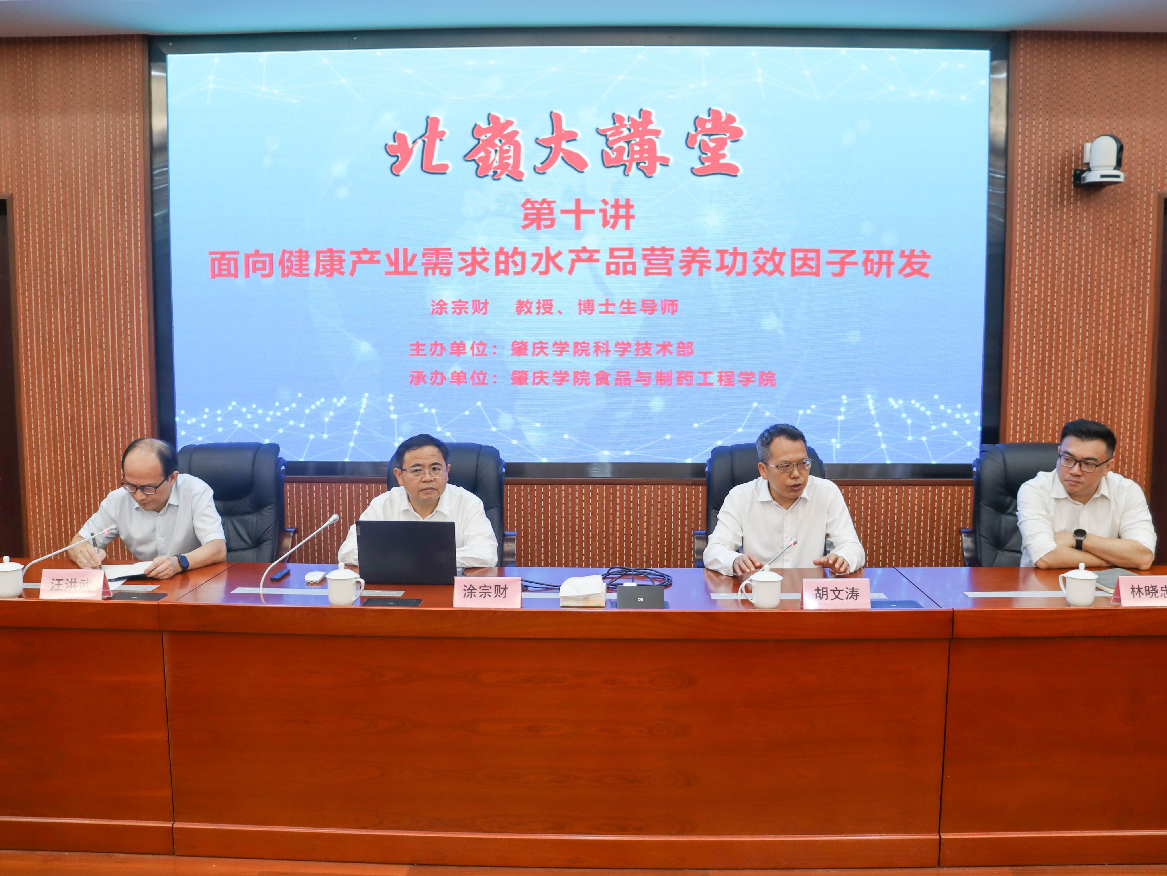 本网讯 11月11日,北岭大讲堂第十讲“面向健康产业需求的水产品营养功效因子研发”开讲。本次讲堂由科学技术部主办、食品与制药工程学院承办,特邀南昌大学党委常委、副校长涂宗财教授主讲。副校长胡文涛,食品与制药工程学院院长汪洪武、党委书记林晓忠及师生代表共130余人参加。
