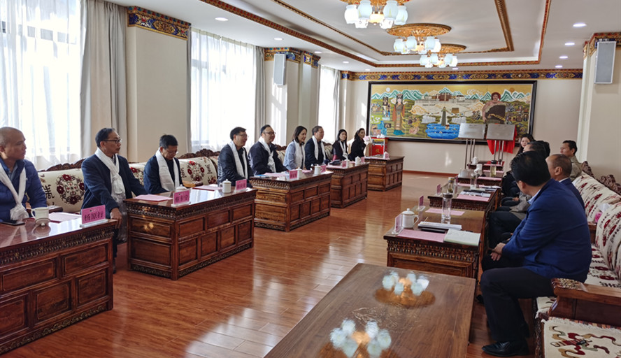 王斌礼代表西藏大学对我校一行的到来表示热烈欢迎,他简要介绍了西藏大学的办学历史、学科建设、发展现状,并结合刚刚召开的中央第七次西藏座谈会精神,强调加强和改进新时代边疆地区大学生思想政治建设的重要性和紧迫性。谢冠华简要介绍了肇庆学院的历史沿革、办学定位、办学成果、发展目标等情况,探讨了广东作为改革开放先行区情形下,做好高校大学生思想政治工作的新形势、新要求、新特点。
