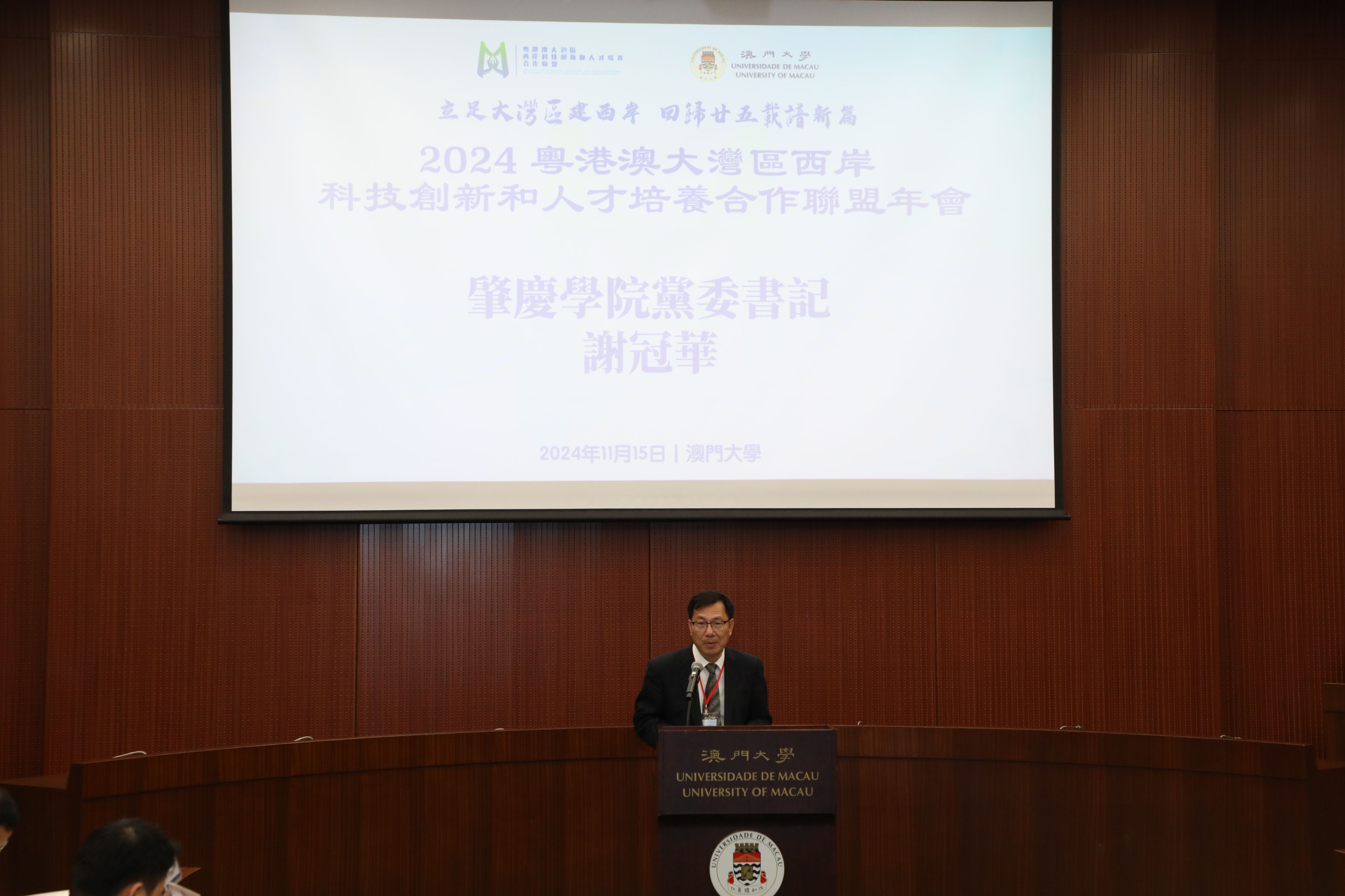 本网讯 11月15日,学校党委书记谢冠华应邀赴澳门大学参加2024年粤港澳大湾区西岸科技创新和人才培养合作联盟年会。组织部部长兼党政办主任谭冠中及港澳台和外事工作部部长李赛男陪同参会。