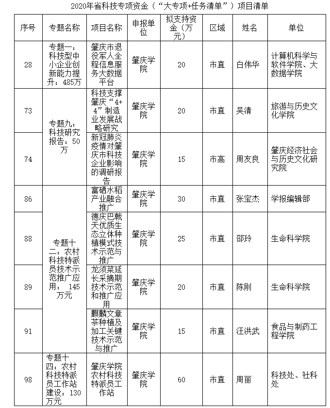 本网讯 近日,市科技局公布了2020年度社会发展与民生领域科技创新专项、2020年省科技专项资金(“大专项+任务清单”)项目立项资助情况,我校11个项目获批资助,其中,社会发展与民生领域科技创新专项3项、省科技专项资金(“大专项+任务清单”)项目8项,获得资助经费共计265万元,创历史新高。