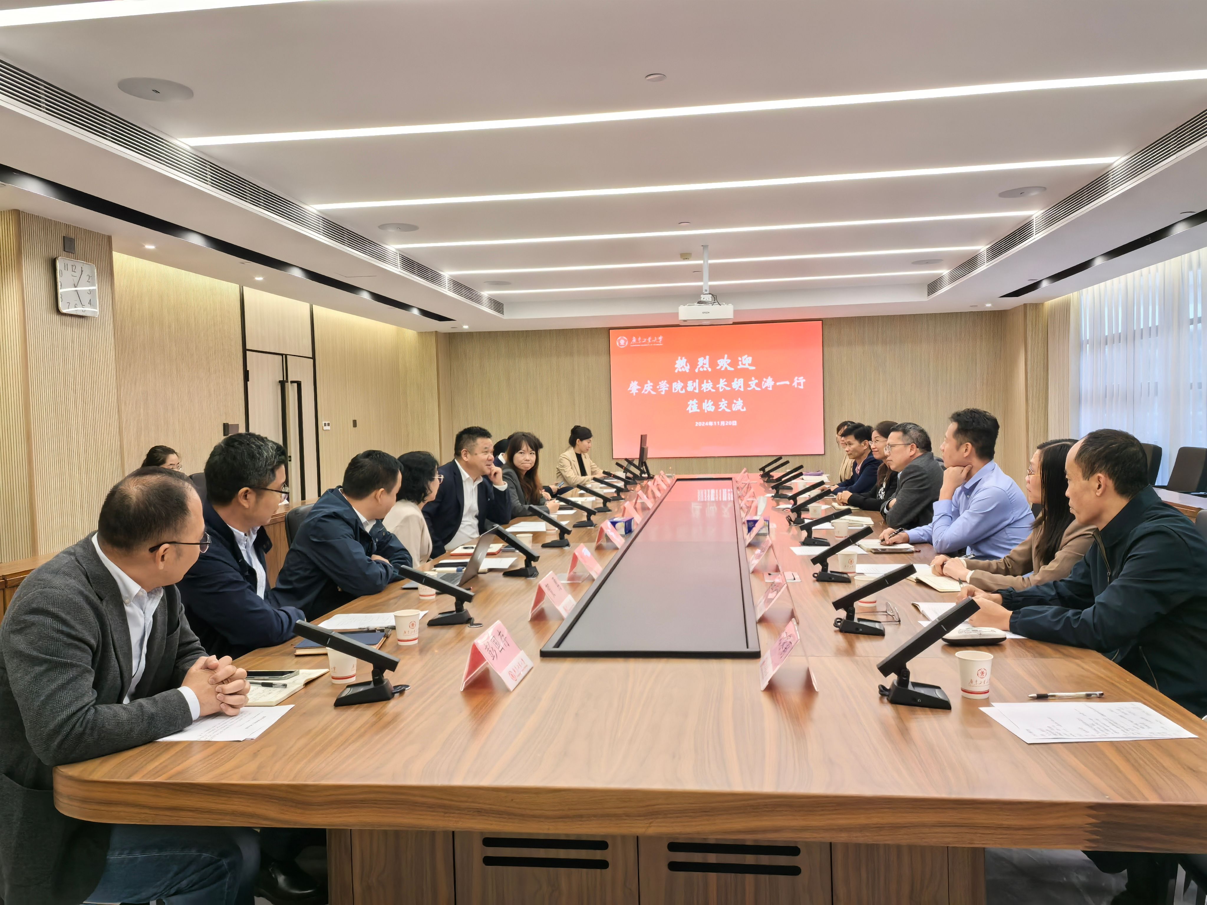 本网讯 11月20日,副校长胡文涛带队赴广州高校调研交流,与广东外语外贸大学副校长焦方太、广东工业大学副校长杜承铭等领导及相关部门负责人座谈交流。