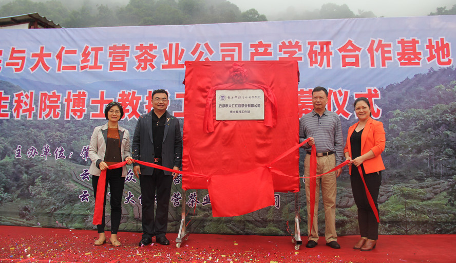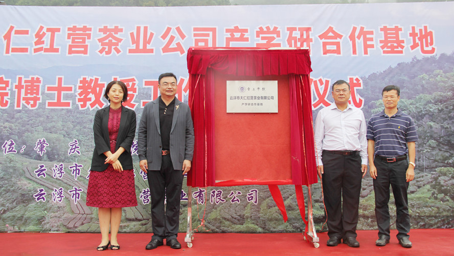 本网讯 10月30日,我校与大仁红营茶业有限责任公司产学研合作基地暨生命科学学院博士教授工作站挂牌揭幕仪式在云浮市云城区安塘街红营茶场举行。