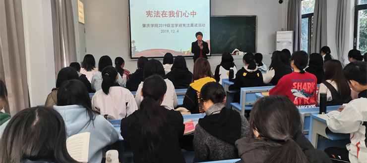 当天,我校还组织师生代表160多人集中收看教育部以“弘扬宪法精神,厚植爱国主义情怀”为主题的2019年国家宪法日全国教育系统宪法晨读活动直播,全体师生随直播跟读宪法。同时,宪法晨读活动在校园展开,校国旗班、体育与健康学院、政法学院等分别组织学生利用升旗仪式、晨练、上课期间进行宪法晨读。其他二级学院通过党支部“三会一课”、主题班会和主题团会等形式,学习宪法和组织宪法朗读活动。