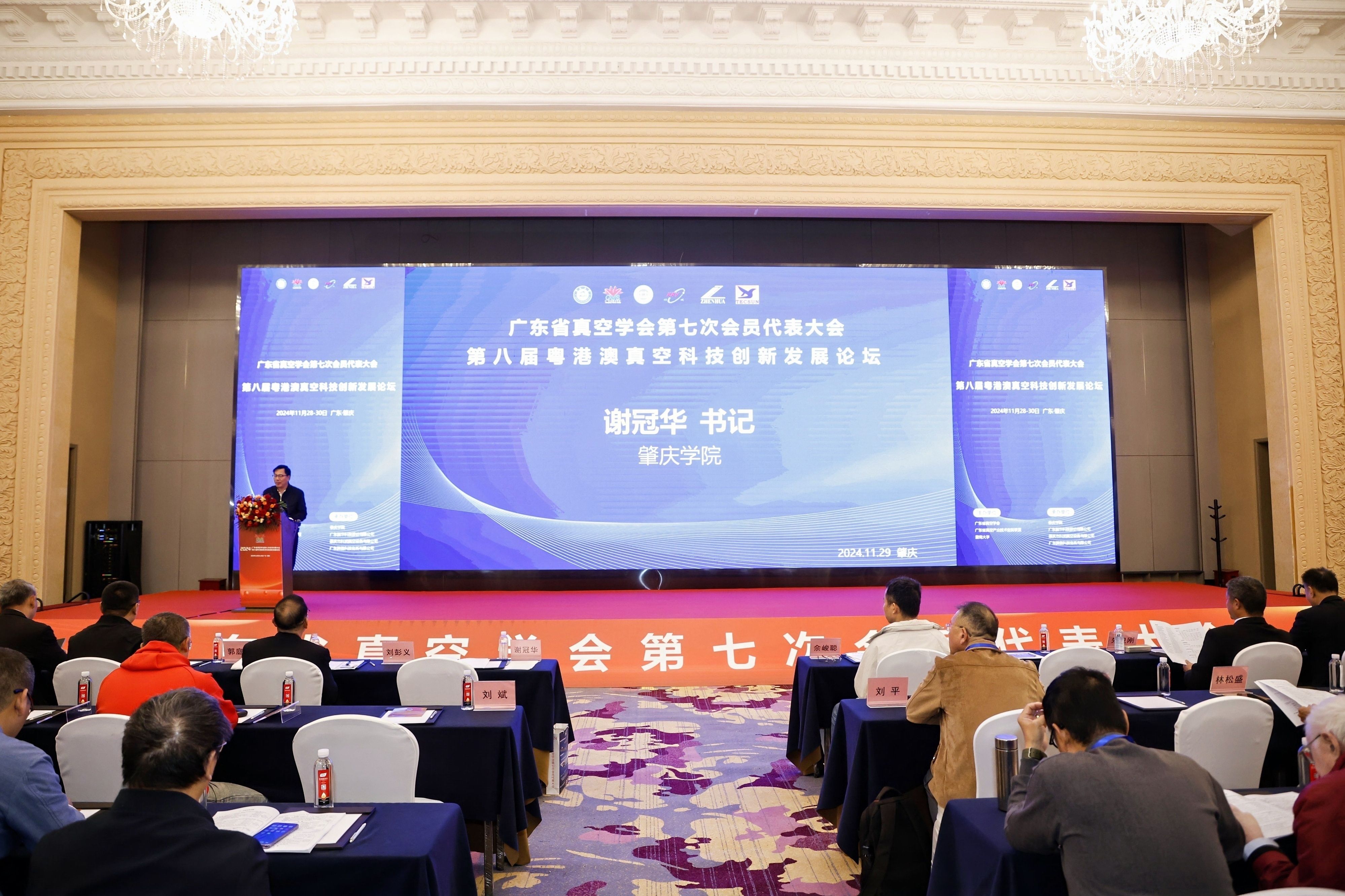 本网讯 11月28-30日,由广东省真空学会、广东省真空产业技术创新联盟、暨南大学主办,我校承办的第八届粤港澳真空科技创新发展论坛暨2024 年广东省真空学会学术年会在我市温德姆至尊酒店召开。来自各大高校、科研院所及行业相关的公司科研人员、技术人员和管理人员约350多人参会,20多家企业参展。广东省科协学会学术部主任郭庭茂出席会议并讲话,广东省真空学会理事长刘彭义教授、秘书长唐振方副教授等参加会议。我校党委书记谢冠华出席会议并作为承办单位代表在开幕式上致词。