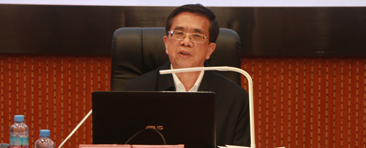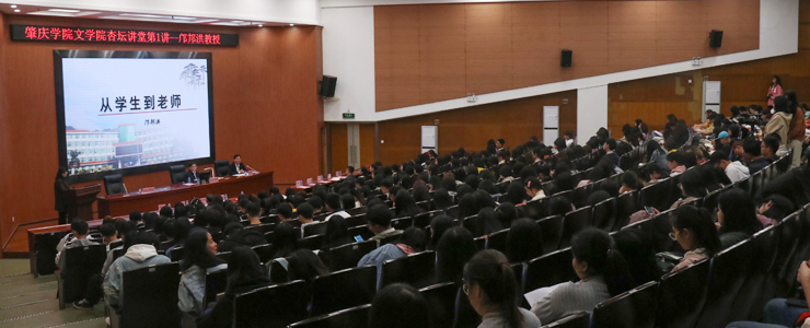 本网讯 11月28日,我校老校长、现任广州工商学院院长邝邦洪教授回到他曾经工作过十年的地方,为文学院杏坛讲堂第一讲担任主讲嘉宾。在题为《从学生到老师》的讲座中,老校长结合自己求学工作的经历,从大学生活的追求、教师工作的使命、教师自身的发展等三个方面展开讲述,殷切寄语文学院的师范学子努力学习,磨砺本领,将来更好地在教师的岗位上担当教书育人的使命,为教育事业作出积极的贡献。校党委副书记谢冠华主持。唐雪莹、陈明华等文学院领导和400多名中文学子参加。