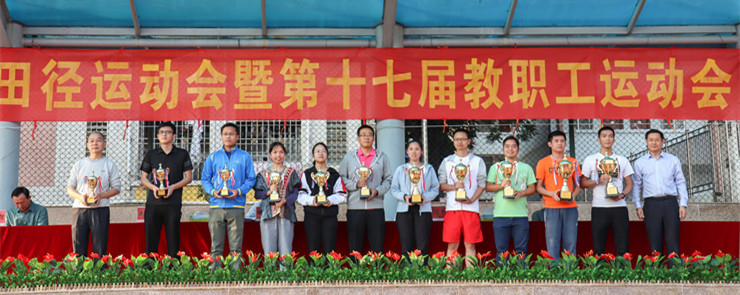 学生比赛如火如荼进行的同时,教职工运动会也同步展开。来自各分工会的代表队认真参与,赛出水平和风格。今年的教职工比赛分为团体趣味运动项目和个人竞赛项目两个部分,教职工在团体赛中团结协作,个人赛则更多地体现了大家的激情活力。机关分工会、美术学院、数学与统计学院分别获得教职工运动会团体总分前三名。