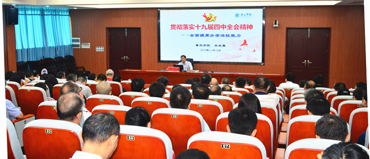 围绕进一步深入学习贯彻落实党的十九届四中全会精神,提高办学治校能力,吴业春提出,要结合学习习近平新时代中国特色社会主义思想和习近平总书记关于教育的重要论述精神,不断强化责任意识、主动担当作为。要严格遵照国家教育政策法规,遵循教育规律,理顺内部治理体制,齐心协力推进学校现代大学制度和治理体系建设,不断提升依法办学和依法治校能力。要聚焦教学科研和学校重点工作,激发教师自觉履行育人职责,树立学术共同体意识,营造浓厚学术氛围,同时要积极运用信息科学技术,不断推进智慧校园建设,建设人人有责、人人尽责、人人享有的学校治理共同体,为服务经济社会发展培育更多优秀人才,贡献更多优秀成果。