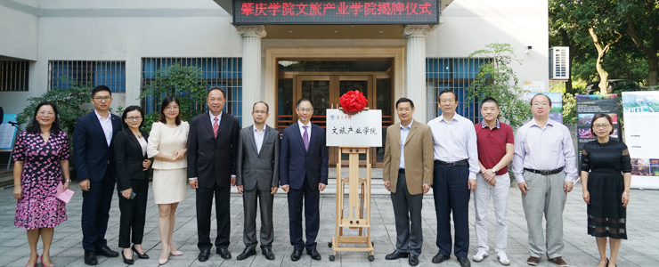 本网讯 11月6日,“肇庆学院文旅产业学院”揭牌成立,为我校首个产业学院,标志着我校产教融合、协同育人、开放办学工作取得新突破。校党委副书记、主持行政全面工作副校长吴业春,肇庆市文化广电旅游体育局二级调研员罗小兵出席,校党委委员、教务处处长丁孝智,创新创业学院院长肖俊霞,东莞松山湖凯悦酒店总经理邓昭灿,旅游与历史文化学院班子等校企部门负责人参加。