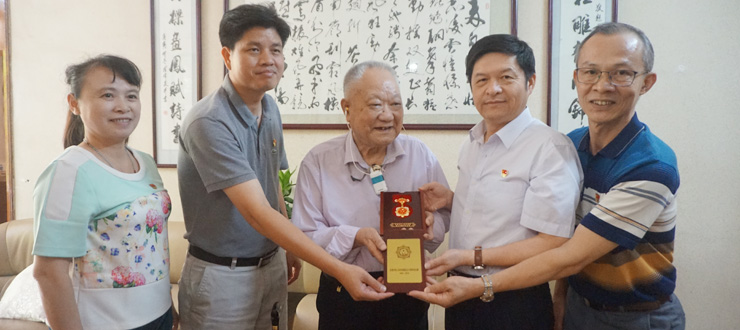 本网讯 近日,校领导曾桓松、吴业春、林俊睦,校长助理黄金分别登门拜访了获授“庆祝中华人民共和国成立70周年”纪念章的我校离退休老同志,向他们表达慰问,共同迎接新中国70华诞。党委组织部、人事处、老干处相关负责人陪同。